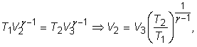 Temperaturile şi volumele atinse în timpul ciclului nu sunt independente. Din ecuaţia adiabatei 2→3: